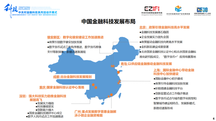 我国金融科技增长趋于稳定。在市场规模、融资金额、企业发展等方面保持稳定增长的态势。在推进数字货币和金融科技创新监管试点等方面取得一定成绩。金融科技企业加快发展,上市企业增多。北京、上海、深圳等城市金融科技发展位居国内前列,依然发挥着引领示范作用。